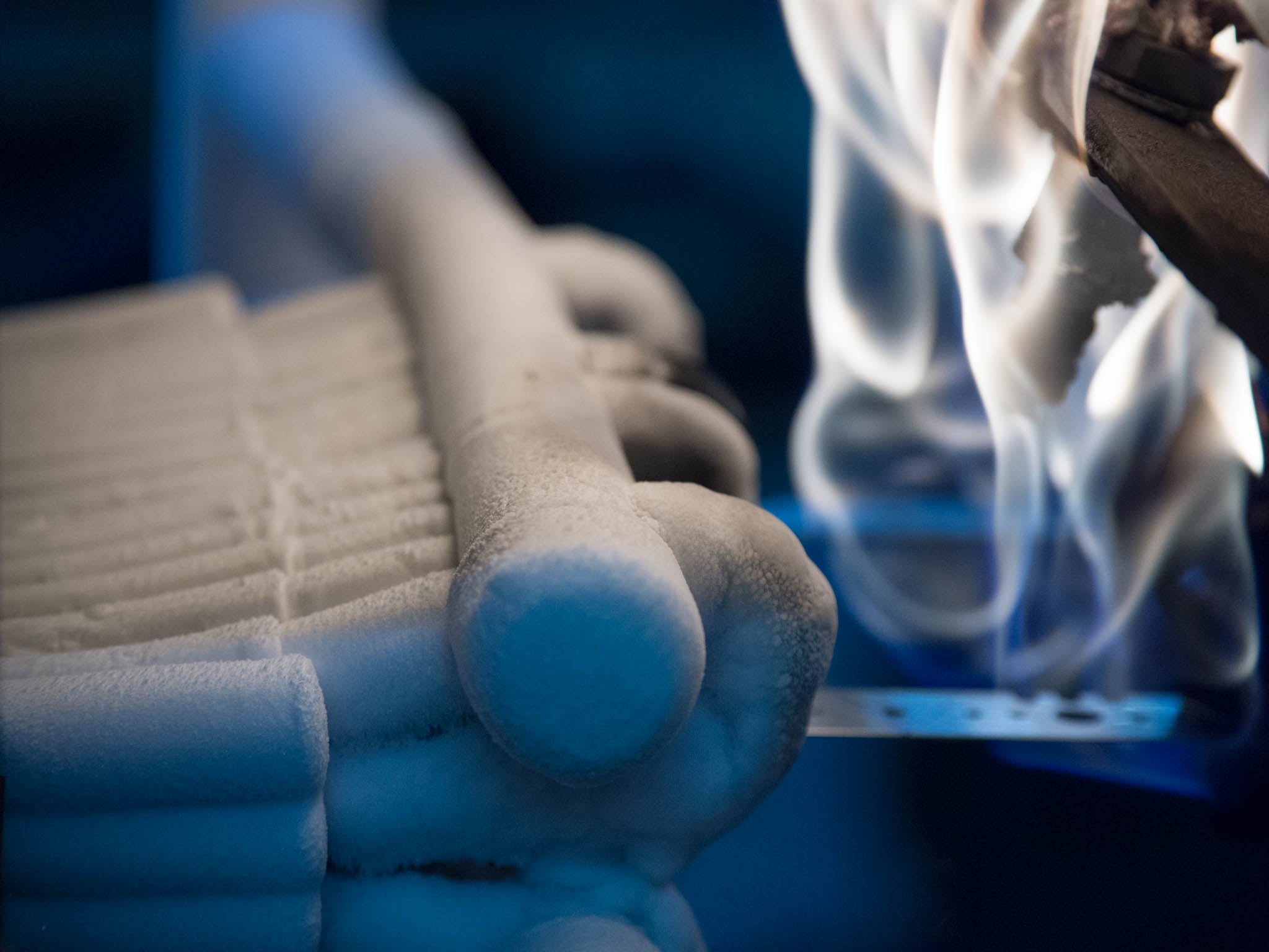 After blanking, our strip steel is hardened to the required degree in a three stage process. The steel is heated in sensor-controlled straight-through furnaces in a hydrogen atmosphere. This is followed by the ice-hardening stage at –80°C, and this is followed by a brief annealing stage to remove stresses. This high-precision process enables us to achieve the ideal mix of hardness and toughness, and very close tolerances of +/- 1 HRC are standard in our production processes.
